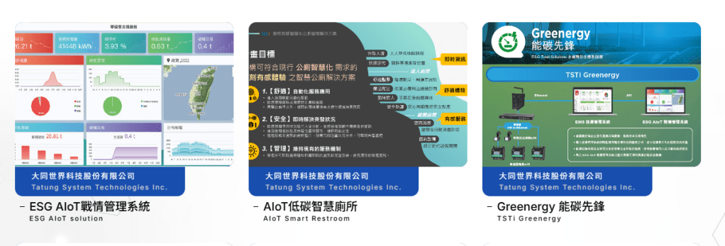 「AIoT低碳智慧廁所」則運用感測與邊緣運算技術,結合水資源管理、安全偵測、耗材管理與智慧告警,提升公廁營運效率與服務品質。該系統已部署於全台多處場域,如台南西拉雅遊客中心、高雄港旅運中心、龍山寺地下街等,成為智慧城市與綠色建築的重要元素。