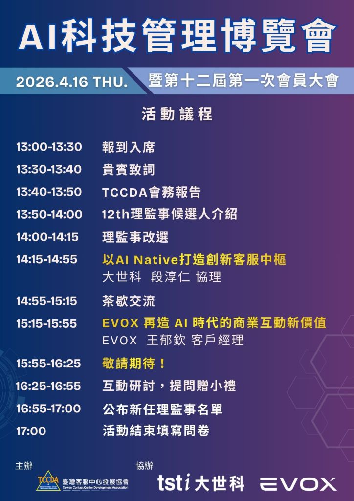 - 關鍵講題: 《以 AI Native 打造創新客服中樞》—— 大世科 段淳仁 協理