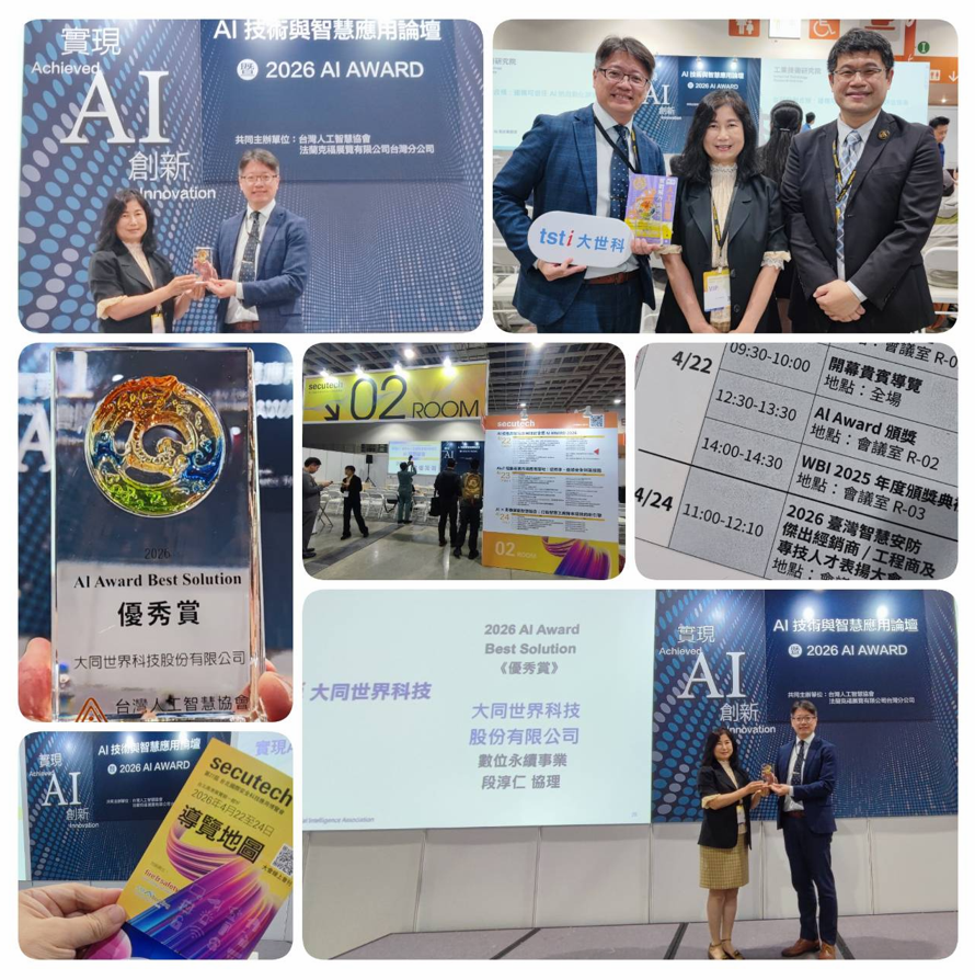 大世科22日於台北南港展覽館一館出席「2026 AI Award」頒獎典禮,榮獲「Best Solution 優秀賞」,台灣人工智慧協會 AI Award 為國內具指標性的專業獎項之一,本次頒獎典禮結合 SecuTech 2026「AI技術與智慧應用論壇」舉辦,由數位發展部數位產業署副署長陳慧敏頒獎,大同世界科技 – 跨產業數位韌性與智慧化解決方案 榮獲 2026 AI Award「Best Solution 優秀賞」展現大世科在人工智慧解決方案落地與企業應用整合上的實力。